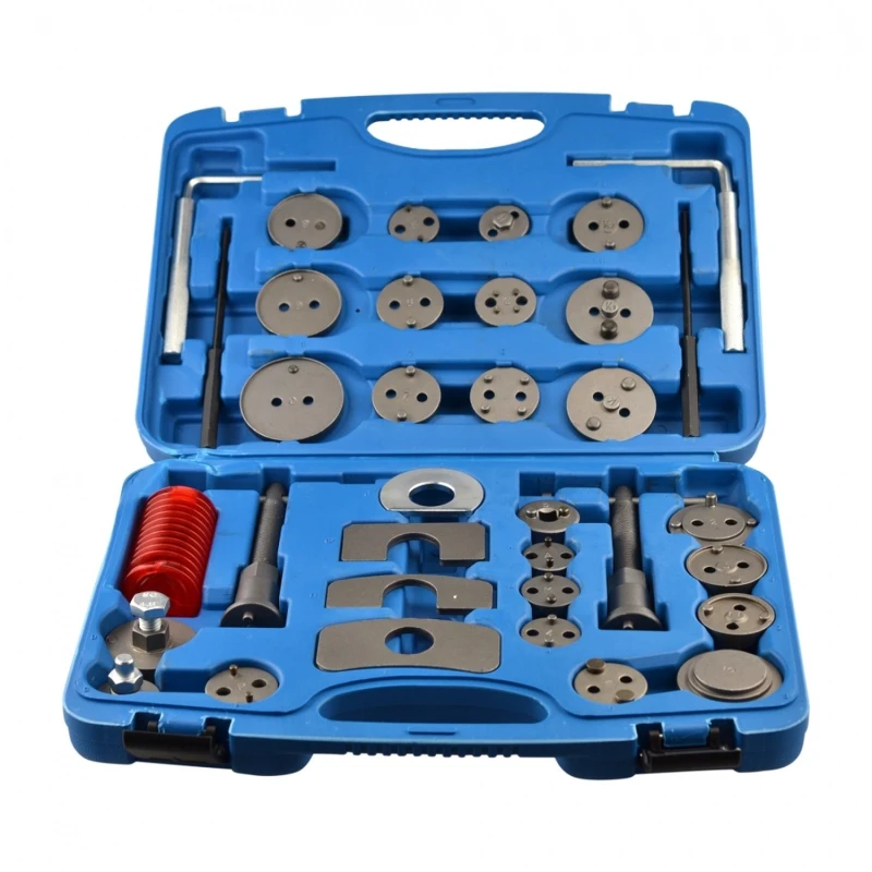 35pc Set Kit Reposicionador Pistones De Freno ir universāls instruments, kas paredzēts, lai atvieglotu virzuļu un kluču nomaiņu aizmugurējās disku bremzēs ar manuālu stāvbremzi (nevis elektronisku). Šis komplekts ir ideāli piemērots profesionāliem mehāniķiem un auto apkopes entuziastiem, kuri meklē pilnīgu un efektīvu risinājumu.