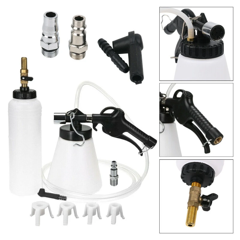 Komplektā ir 1 litra bremžu atgaisotājs, 0.75 litru rezerves pudele ar drošības aizdari, āķis piekāršanai, 2 metrus gara silikona šļūtene, ātrais savienojums kompresoram un 4 adapteri.