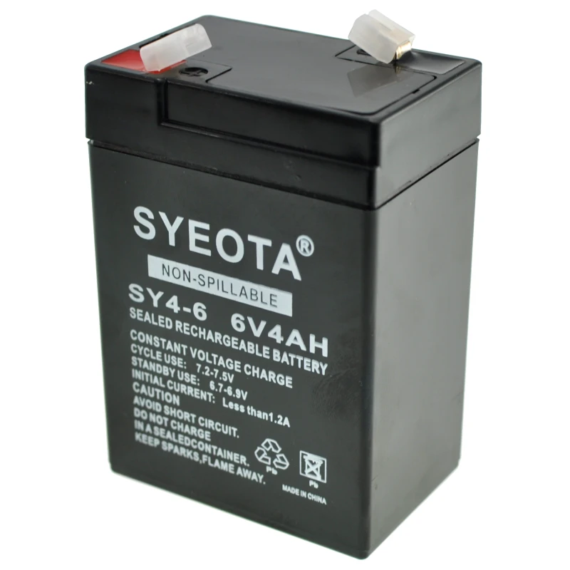 Uzlādējams svina akumulators SY4-6 6V 4Ah trauksmēm, svariem un rotaļlietām Uzlādējams svina akumulators SY4-6 6V 4Ah trauksmēm, svariem un rotaļlietām