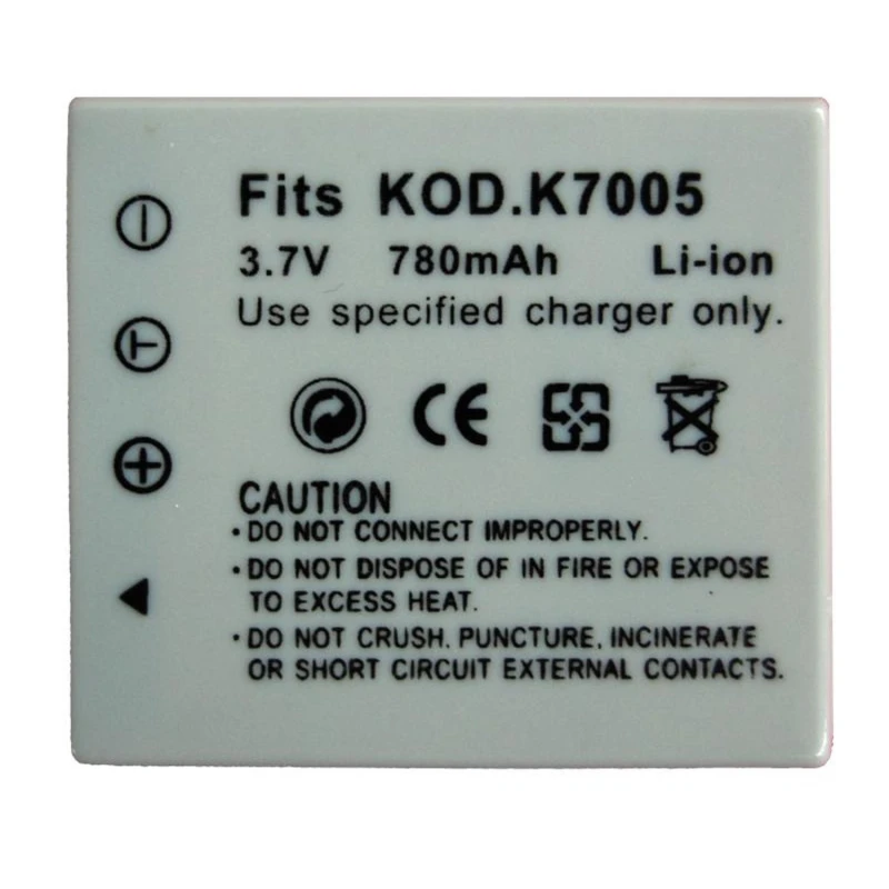 Kodak KLIC-7005 saderīga baterija ir uzlādējama litija jonu (Li-Ion) baterija, kas paredzēta uzticamai un ilgstošai darbībai saderīgās digitālajās kamerās un videokamerās. Ar 3.7V spriegumu un 780mAh ietilpību šī baterija ir lieliska izvēle oriģinālās baterijas nomaiņai un palīdzēs jūsu iekārtai vienmēr būt gatavai svarīgu mirkļu iemūžināšanai.
