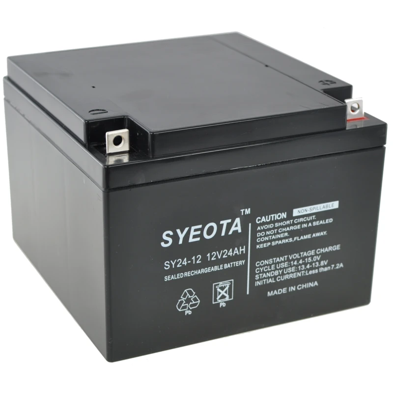 Noslēgtais AGM svina akumulators SY24-12 ir piemērotāks, ja nepieciešama robusta konstrukcija, zemas izmaksas uz ampērstundu, tolerance pret mainīgiem uzlādes cikliem un tieša saderība ar esošām sistēmām, kas paredzētas šāda tipa akumulatoriem. Salīdzinot ar litija akumulatoriem, tas ir smagāks un tā kalpošanas laiks ir nedaudz īsāks, taču tam ir mazākas elektroniskās aizsardzības prasības un tas var labāk darboties mērenā līdz zemā temperatūrā.