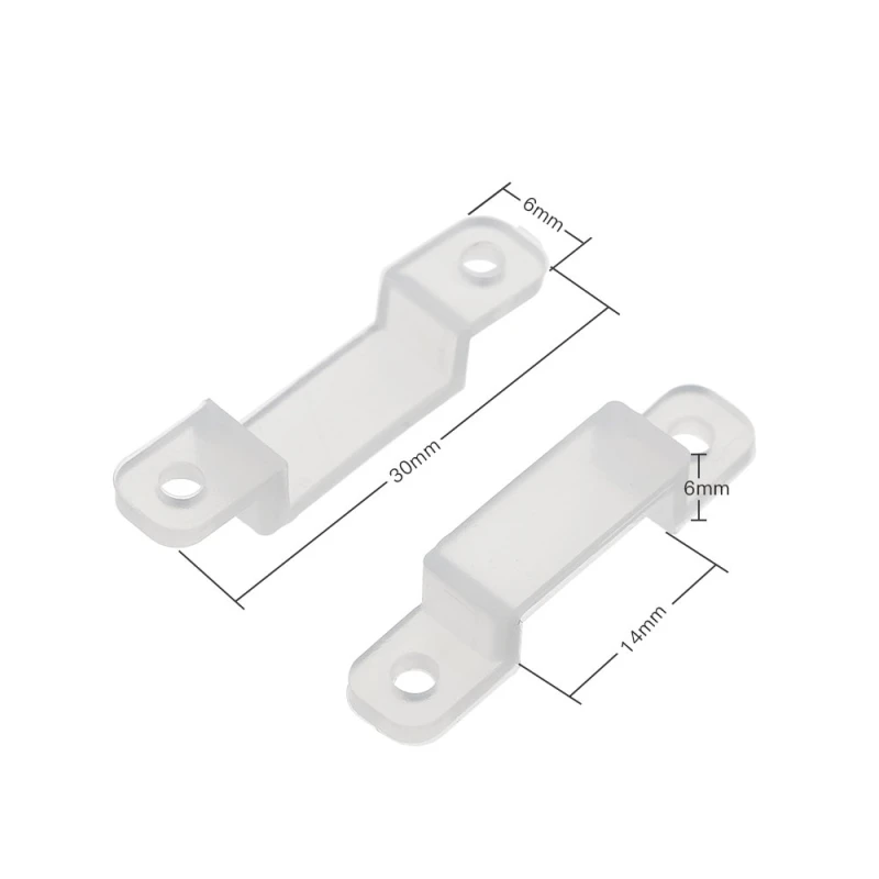 Šis stiprinājuma klipsis ir īpaši izstrādāts, lai droši un nemanāmi nostiprinātu 12V LED lentes, pateicoties caurspīdīgajam silikona materiālam, kas nemaina apgaismojuma estētiku.