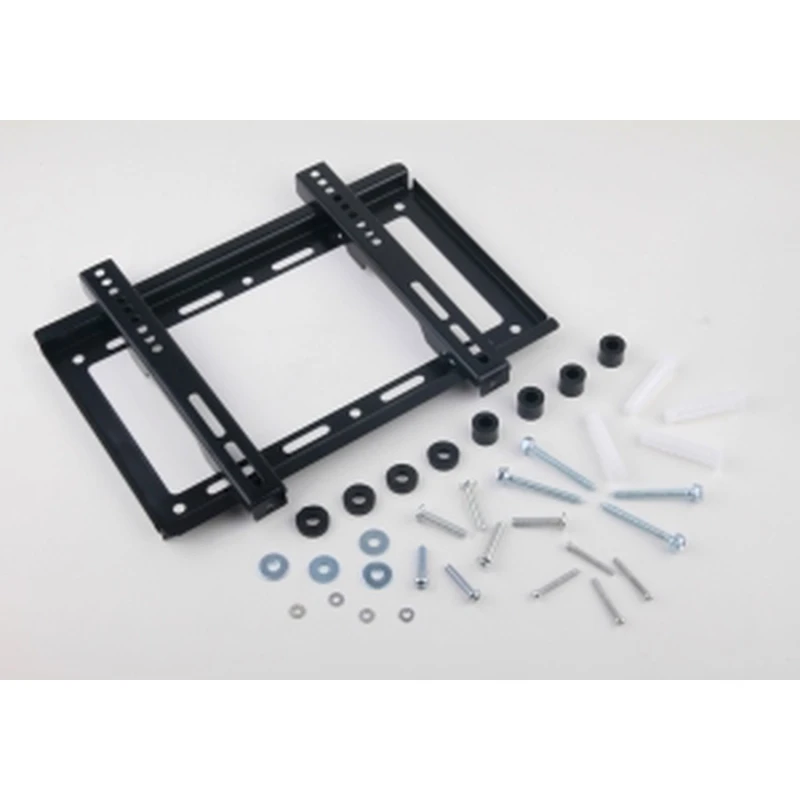 Komplektā ir metāla statīvs un montāžas skrūvju komplekts televizora nostiprināšanai un statīva piestiprināšanai pie sienas. Instrumenti nav iekļauti; parasti pareizai uzstādīšanai nepieciešams urbis, skrūvgriezis un līmeņrādis.