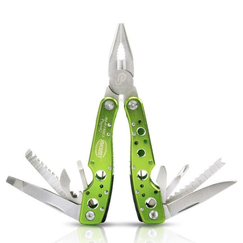 Jakemy JM-PJ1003 9-in-1 salokāmie knaibles ir kompakts un pārnēsājams komplekts, kas paredzēts dažādu remonta darbu un āra aktivitāšu atvieglošanai. Tā salokāmais dizains un futrālis ar jostas klipsi ļauj to ērti pārnēsāt, padarot šo rīku par neaizstājamu nelieliem projektiem, ātriem remontiem un kempingam.